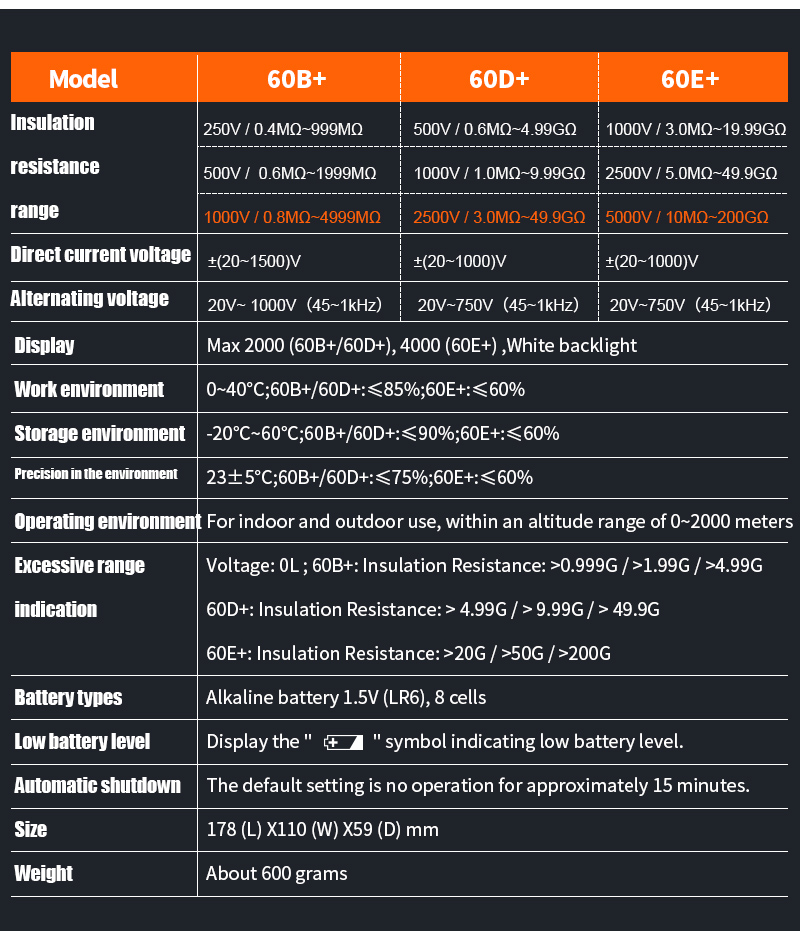 Insulation resistance up to 200 GΩ – Ideal for high-voltage cables, transformers, and motors
