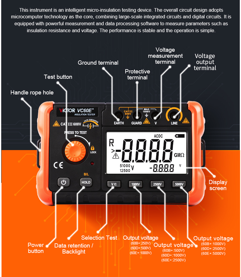 Multiple test voltages – Selectable from 250V to 5000V across models